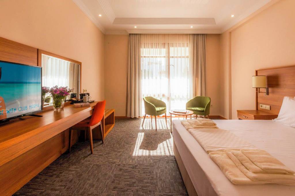 Tucked away in beautiful Turgutreis, enjoy a laid-back escape at Club Marma. Get ready to soak up the sun with breathtaking sea views at the private beach, or take a dip in the relaxing outdoor pool. The choice is yours! Set in a village style layout, rooms are comfortable and spacious with plenty of room for the whole family.