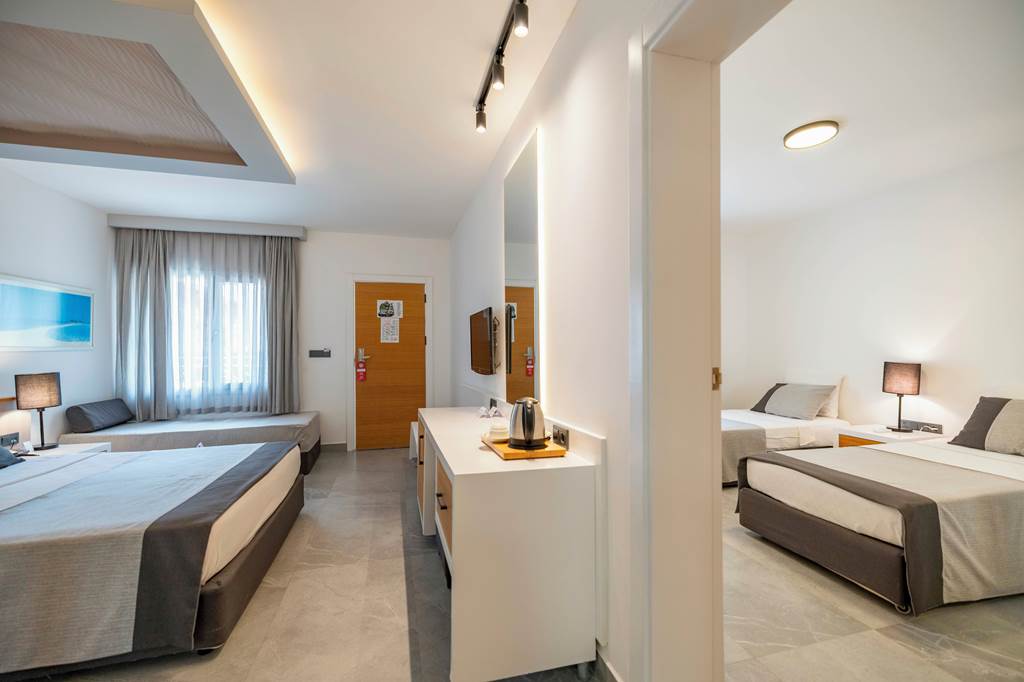 The Kadikale Resort benefits from a stunning beachfront setting with spectacular views from the pool terrace over the sea towards Turgutreis. The complex itself comprises of an array of whitewashed buildings set in lush green gardens and interspersed with pretty, pink bougainvillea. There’s a lively atmosphere around the pool and fun entertainment programme to enjoy by day, and then as night falls why not enjoy a refreshing drink from one of the bars and take in the striking views whilst watching the sun set? Children will also love it here too, with a couple of colourful waterslides and a fun children’s club to keep them entertained! Perfect for both couples and families alike looking for a well-equipped All Inclusive hotel.
