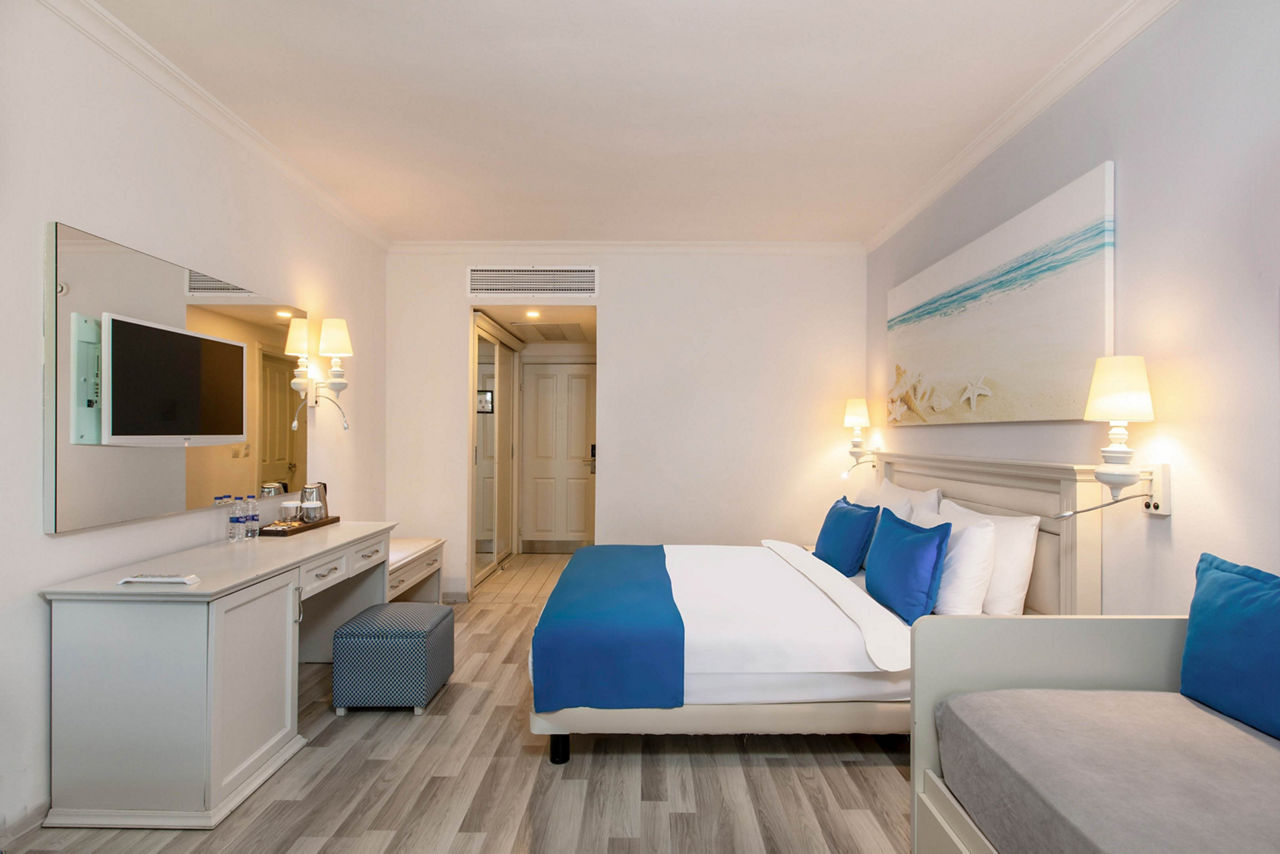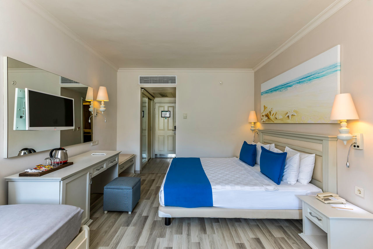 When it comes to fab facilities, beachfront Selectum Collection Bodrum ticks all the boxes! Soothing spa? Three tennis courts? Fun-packed kids’ club? It’s all here. And with a spacious pool area, there’ll be plenty of time to soak up some Turkish sun and have a dip. Whether it’s down by the beach or around the pool, you can relax while the kids keep busy with the hotel’s fantastic children’s club and playground! Rooms are bright and spacious, providing a comfortable space to relax in after fun-packed days enjoying everything this modern hotel has to offer.