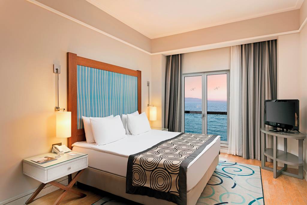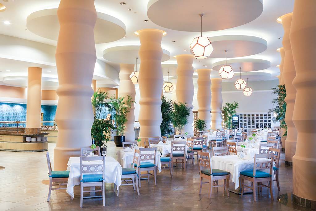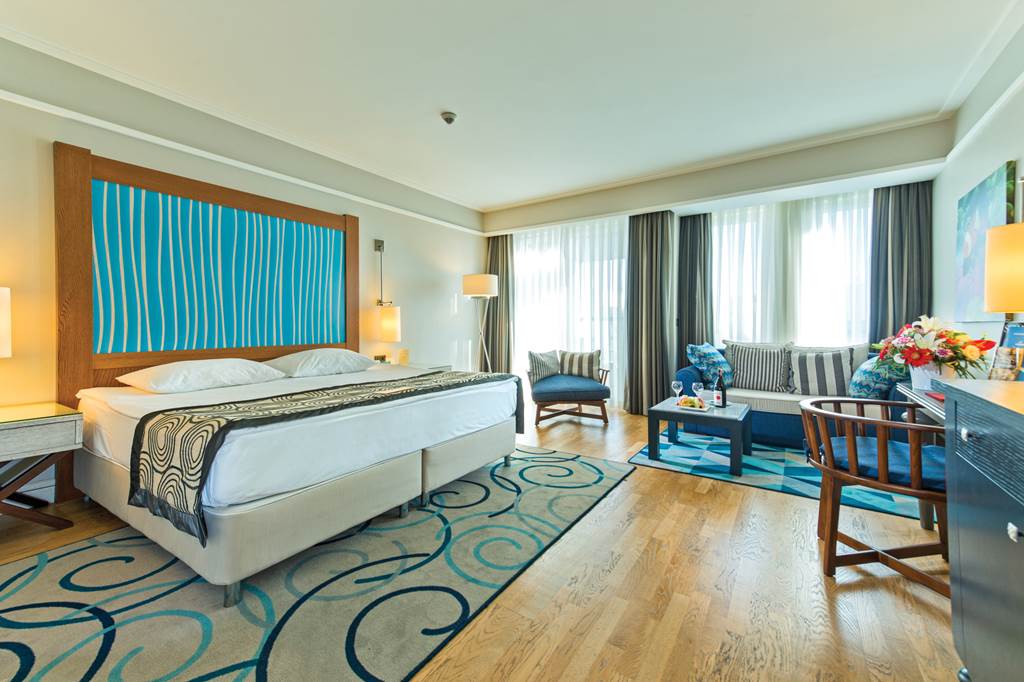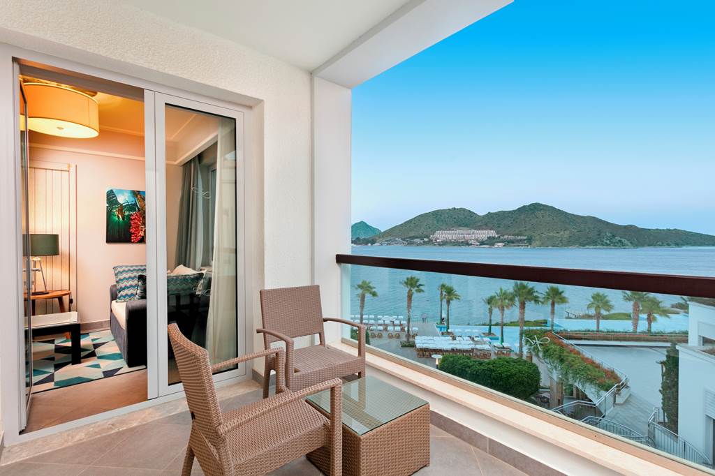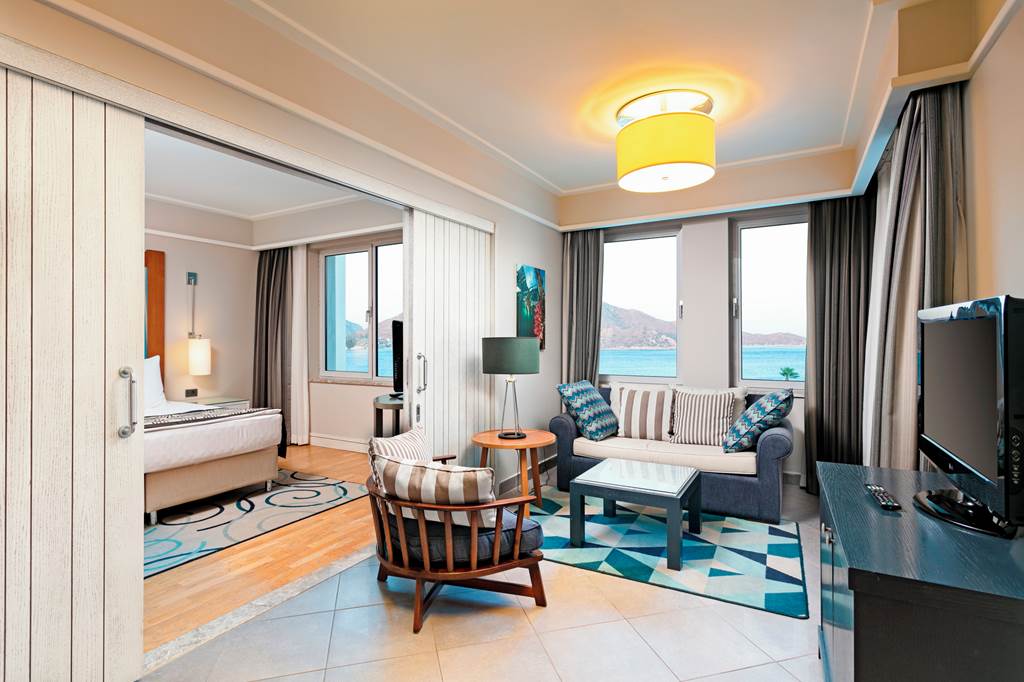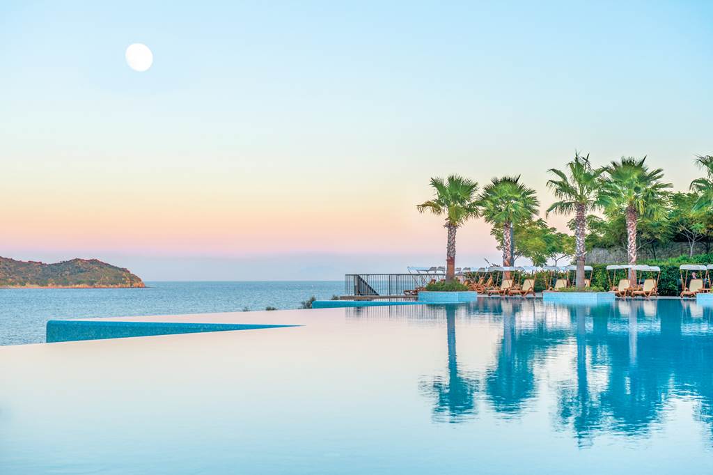 Located on its own private peninsula, Xanadu Island serves sapphire sea views on all sides. Meander through flowered courtyards and stroll along the private pebbled beach to feel a sense of romance. The property’s white exterior contrasts beautifully against the dramatic Aegean Sea. No need to worry about space with suite-style accommodation. They’re wonderful for lounging in after you’ve sampled everything from Italian to Turkish cuisine in the buffet and à la carte restaurants. Past the muted-palate interiors, three outdoor pools, seven bars, a spa, Turkish bath and more wait to welcome you. Where to first?
