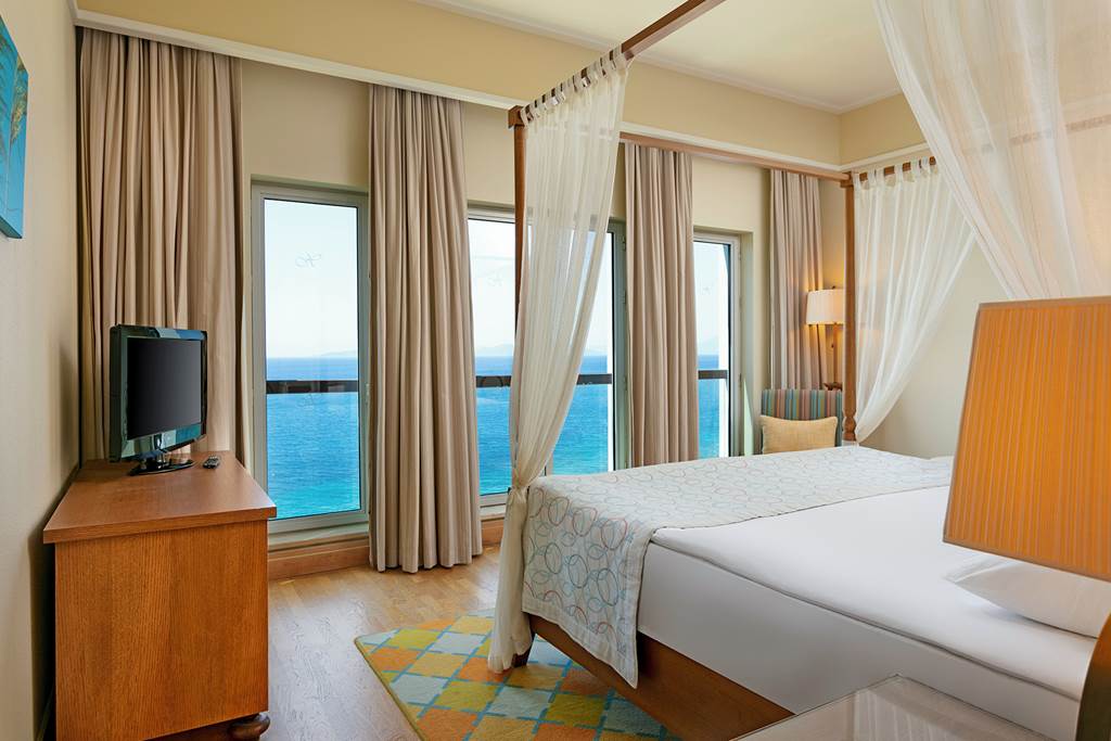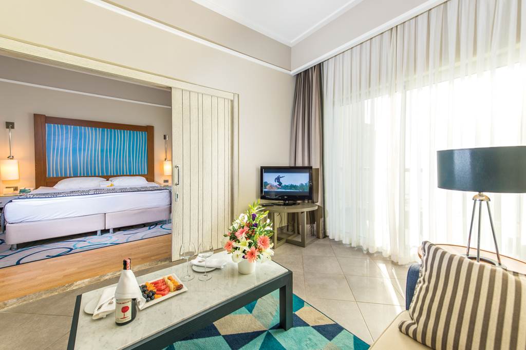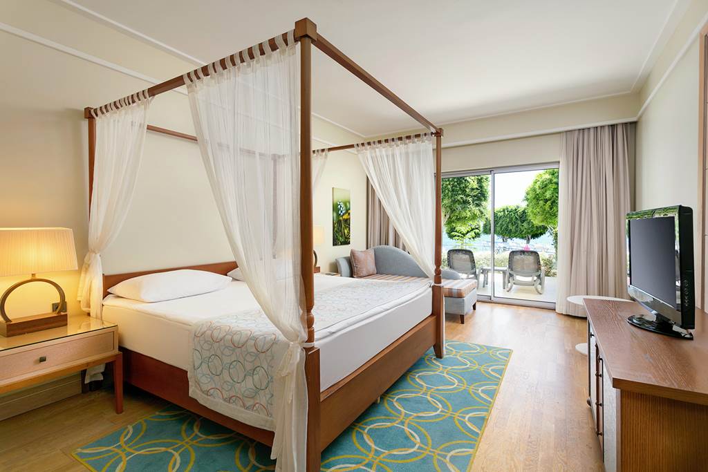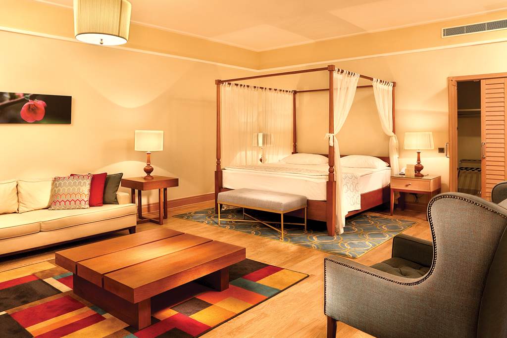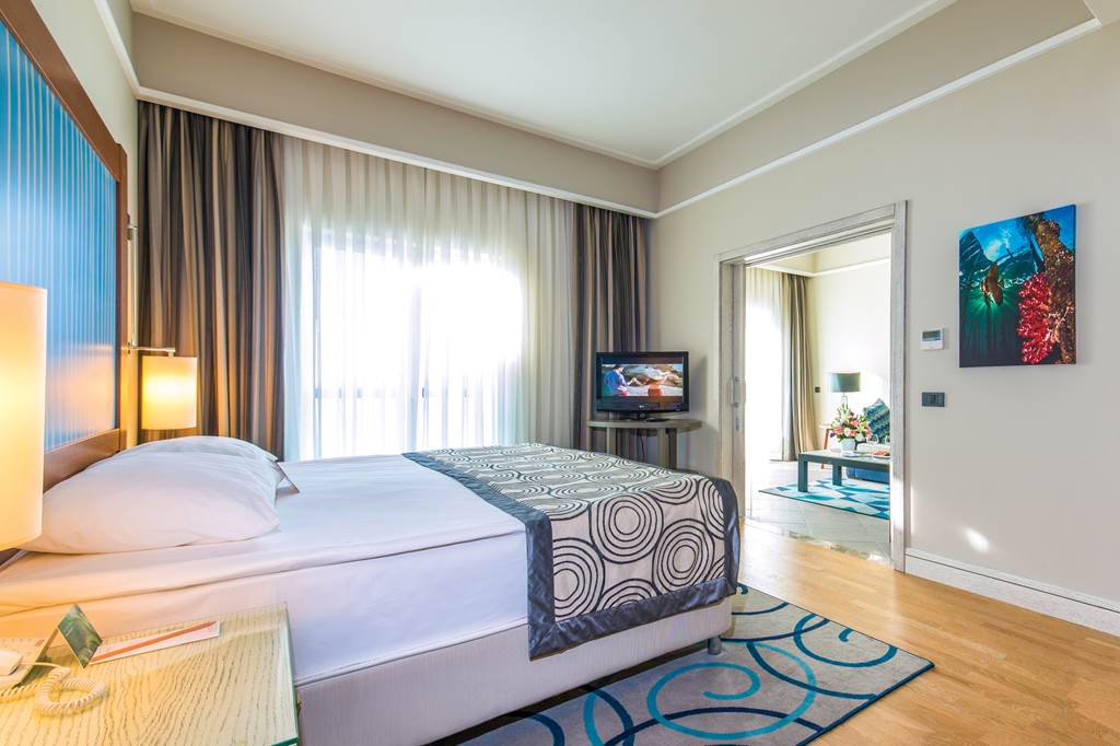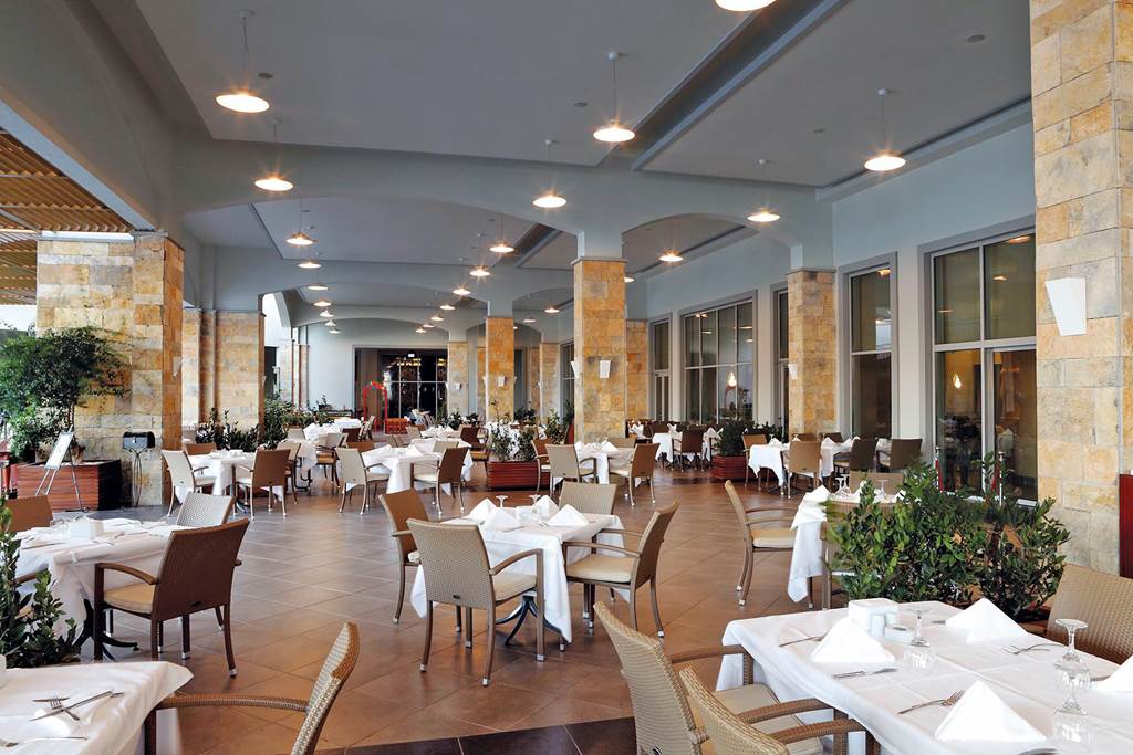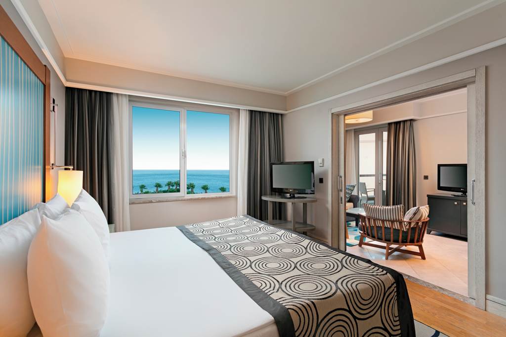 Located on its own private peninsula, Xanadu Island serves sapphire sea views on all sides. Meander through flowered courtyards and stroll along the private pebbled beach to feel a sense of romance. The property’s white exterior contrasts beautifully against the dramatic Aegean Sea. No need to worry about space with suite-style accommodation. They’re wonderful for lounging in after you’ve sampled everything from Italian to Turkish cuisine in the buffet and à la carte restaurants. Past the muted-palate interiors, three outdoor pools, seven bars, a spa, Turkish bath and more wait to welcome you. Where to first?