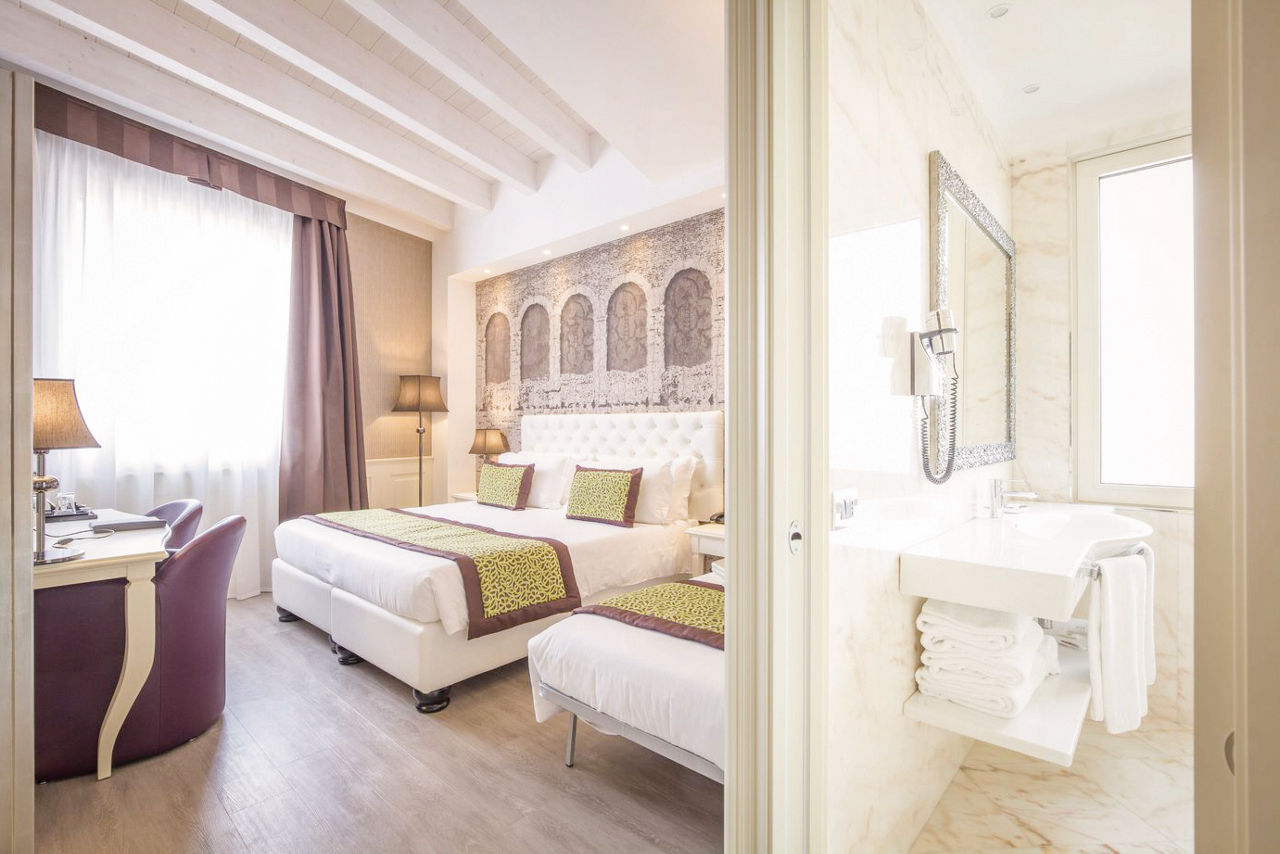 The delightful San Pietro enjoys an idyllic setting just a short distance from Verona Train Station, meaning getting to the historical centre can be done with ease. For those who enjoy a pleasant stroll, most sights can be reached on foot, or you can use the hotel’s shuttle service directly to Verona Arena. The property also offers free bicycles so the city can be explored at leisure on two wheels. The comfortable rooms are beautifully appointed and come complete with all the amenities needed for a relaxing stay. The charming hospitality and elegant style make this hotel an ideal choice for your stay in Verona.