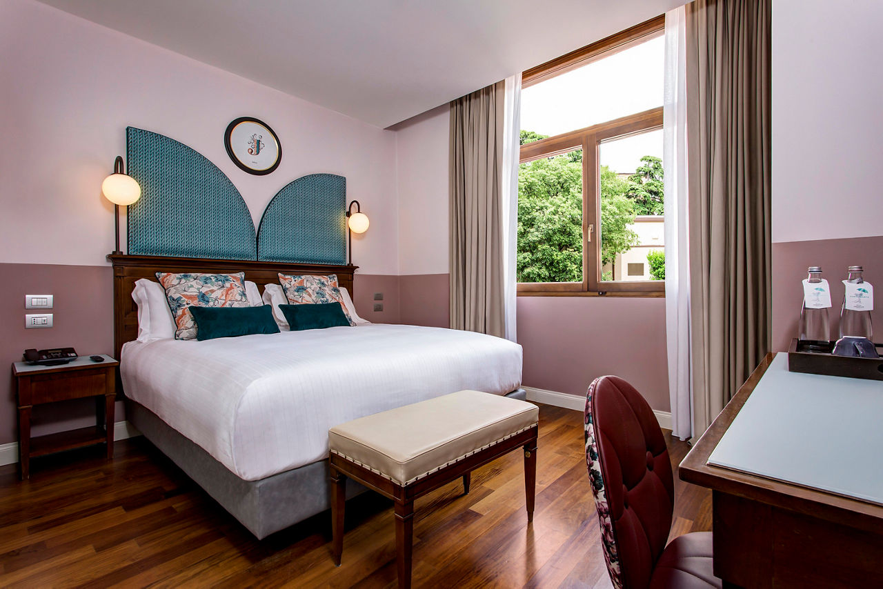 Indigo Verona Grand Hotel Des Arts is also a historic landmark in Verona, once the residence of a noble Austrian family. Located on Corso Porta Nuova, it is close to key sights like Piazza Bra and Verona Arena. Explore the city from incredible location or unwind in the tranquil courtyard garden. The elegant lobby showcases artworks by famous artists, while rooms with Art Nouveau decor overlook the garden or the bustling Corso Porta Nuova. With exceptional service and proximity to top attractions, it is an ideal choice for couples and friends seeking comfortable and convenient hotel in Verona.