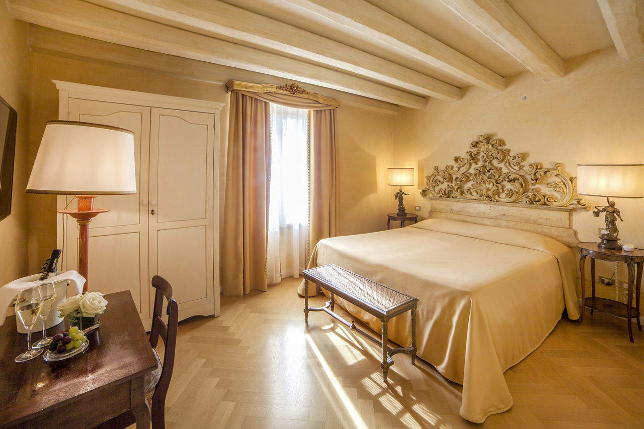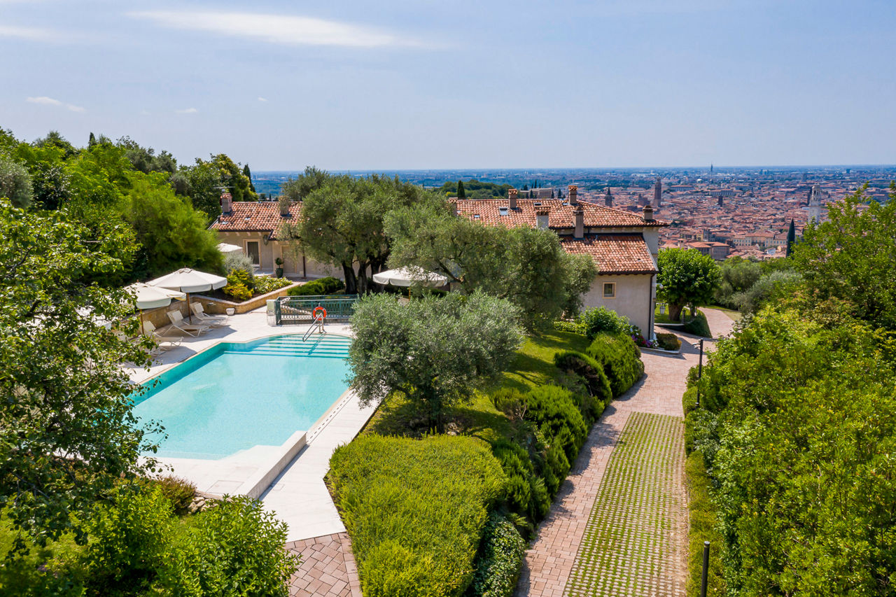Set in a stunning location outside the Parco delle Colombare, Relais Fra Lorenzo is an impressive hotel immersed in the silence of an ancient olive tree garden, set above the hustle and bustle of Verona city. A tranquil location where guests can relax by the pool and enjoy the spectacular views across Verona from the hotel’s grounds. Elegantly furnished rooms are all equipped with the amenities expected and all have wonderful views over the old town of Verona. The hotel offers a shuttle service to the city centre, and it is just a short walk from the main sights. This hotel is the perfect choice for those looking for a peaceful and relaxing stay yet with easy access to the beautiful city.